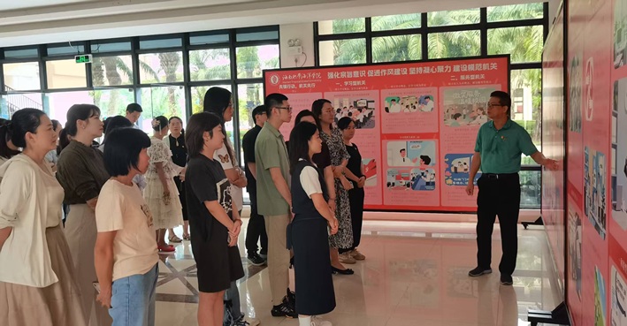 10月27日,海南热带海洋学院机关党委精心策划了一场意义深远的学习之旅,组织机关各支部党员干部齐聚行政楼一楼大厅,共同参观“五型机关”建设展览。此次活动旨在深化宗旨意识,锤炼工作作风,凝聚奋进力量,全力打造模范机关。